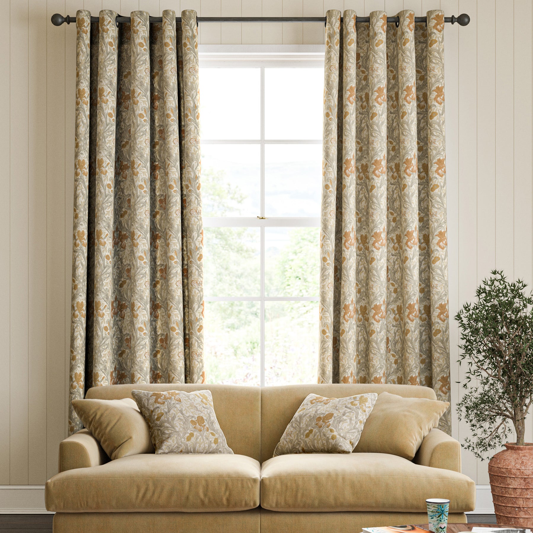 These William Morris Iris made to measure curtains in the shade Honey are crafted from 100% cotton, offering a natural, breathable fabric that enhances any room with timeless elegance. Part of the renowned William Morris collection, the design features intricate floral patterns that bring classic charm and sophistication to your interiors. Custom made to your exact measurements, these curtains ensure a perfect fit, combining aesthetic appeal with practical functionality. Ideal for adding warmth and style, they provide a durable and easy-care window dressing solution that complements both traditional and contemporary decor.