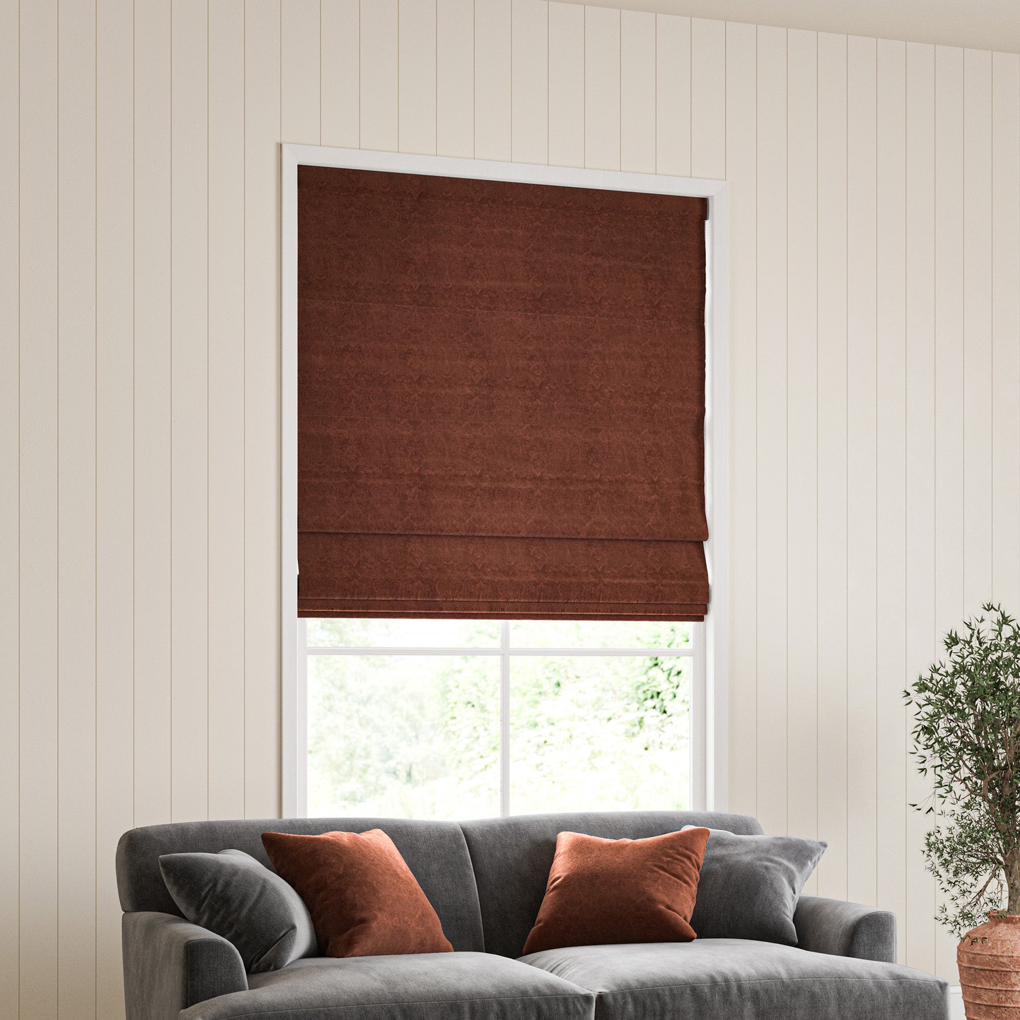 Our roman blinds are all lined, and are supplied with a good quality polycotton lining as standard. For a small surcharge it is possible to upgrade the lining to one of our premium linings, either a sateen cotton lining in a cream/ecru colour, or a cream blackout lining.