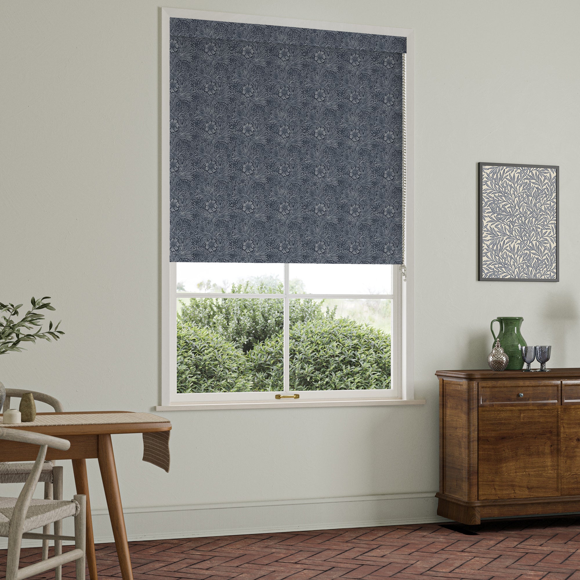 The William Morris Marigold Translucent Made to Measure Roller Blind in Indigo combines classic design with practical functionality. Crafted from 100% polyester, this translucent blind gently filters natural light, creating a soft, ambient glow while maintaining privacy. Part of the esteemed William Morris collection, its intricate Marigold pattern adds timeless elegance to any room. Ideal for living spaces where you want to reduce glare without sacrificing daylight, this roller blind offers a sophisticated solution for light control.