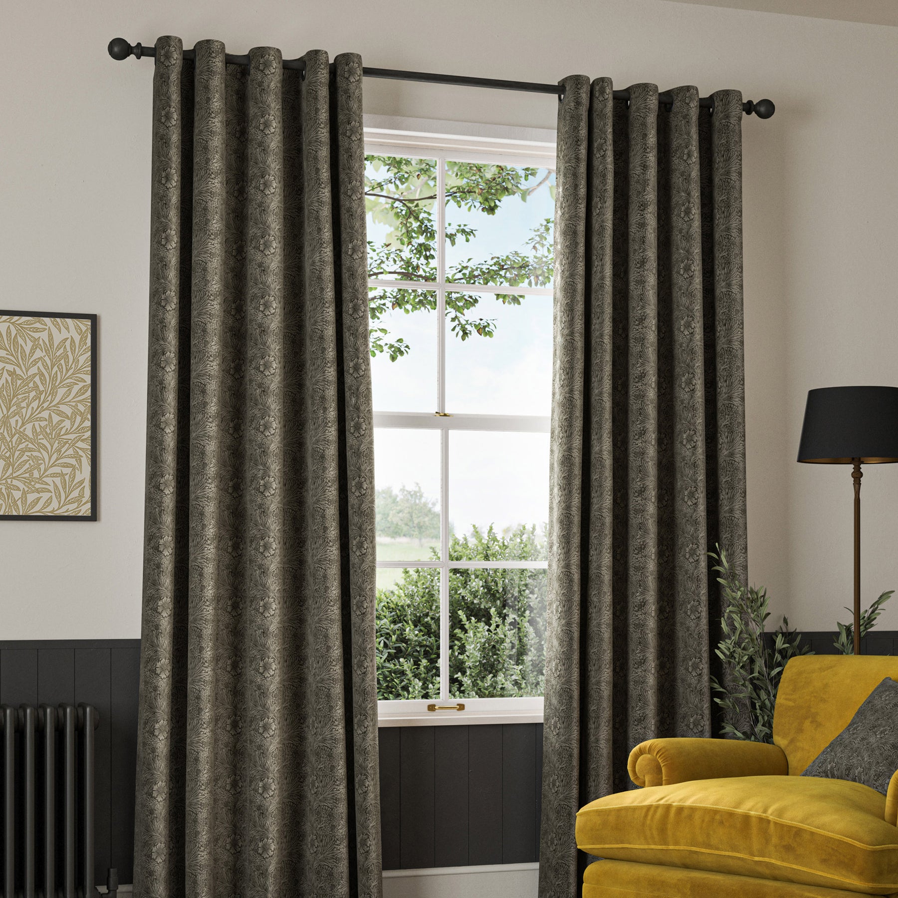 Eyelet Heading - Eyelet headings can only be used with curtain poles, and there is a choice of eyelet colours available to help you match the curtains to your room. Eyelet curtains take up very little room each side of the window, and this allows the maximum amount of light through your window. You also need slightly less fullness in eyelet curtains so they work very well for smaller windows. However, its best to avoid vertical striped patterns as they can look a little strange when opened.