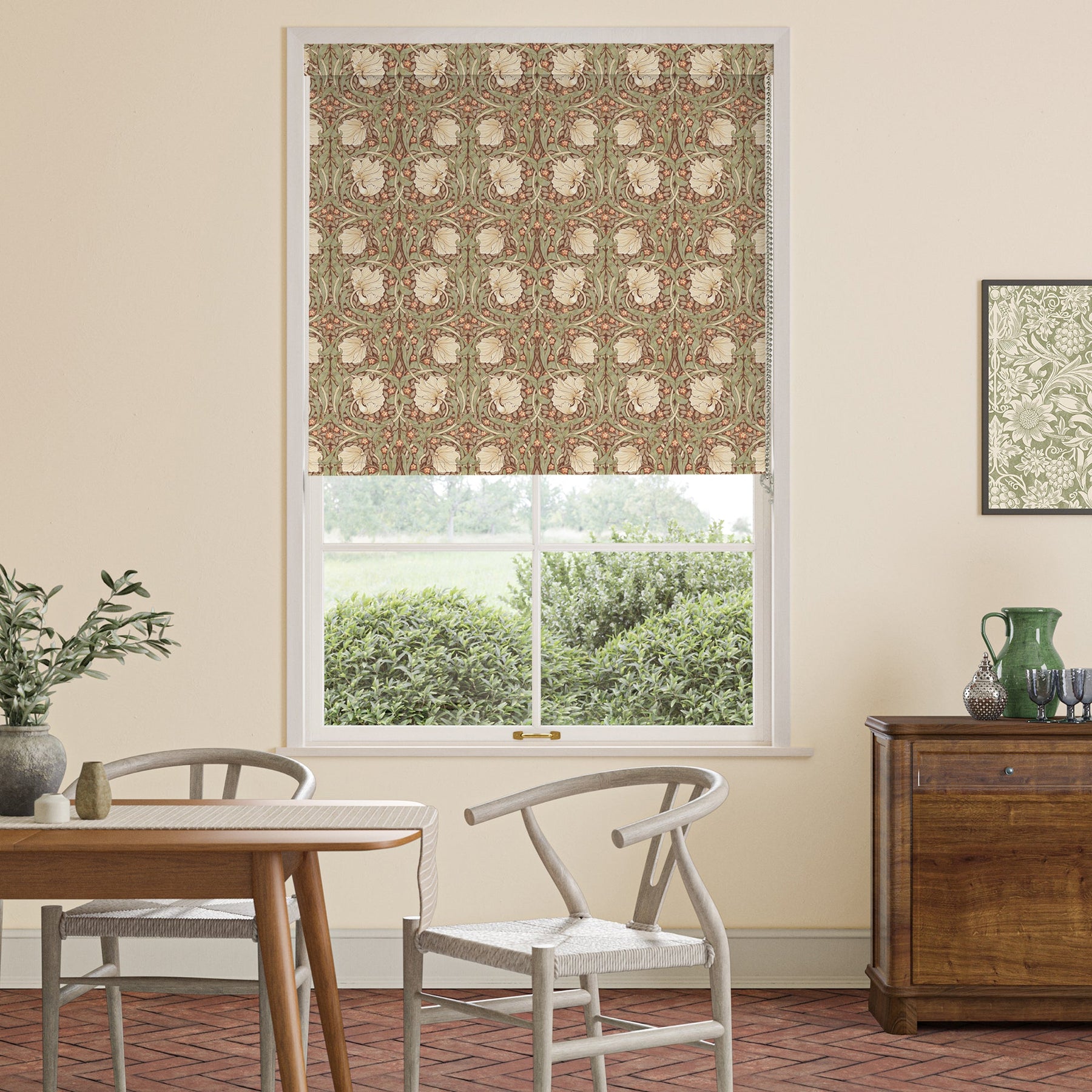 The William Morris Pimpernel Translucent Made to Measure Roller Blind in Brick offers a refined window dressing solution from the iconic William Morris collection. Crafted from 100% polyester, this translucent blind gently filters natural light, creating a warm, inviting ambiance while maintaining privacy. Unlike blackout blinds, it allows soft daylight to permeate your space, enhancing the room’s atmosphere without harsh glare.