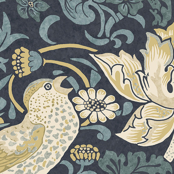 Perhaps William Morris’ most recognisable design, Strawberry Thief, draws inspiration from the thrushes that would sneak beneath the strawberry nets in his Kelmscott Manor garden. The original pattern took several days to print using hand-carved woodblocks to build up the different colours.