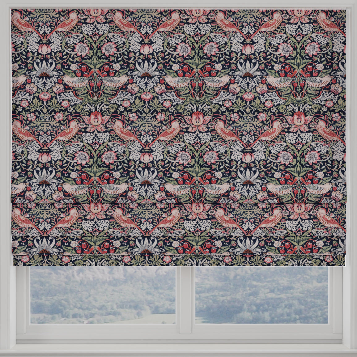 This wonderful 100% cotton material can now be ordered as made to measure roman blinds, perfect for most windows in the home. Creating a soft and warming look in your window treatment of choice.