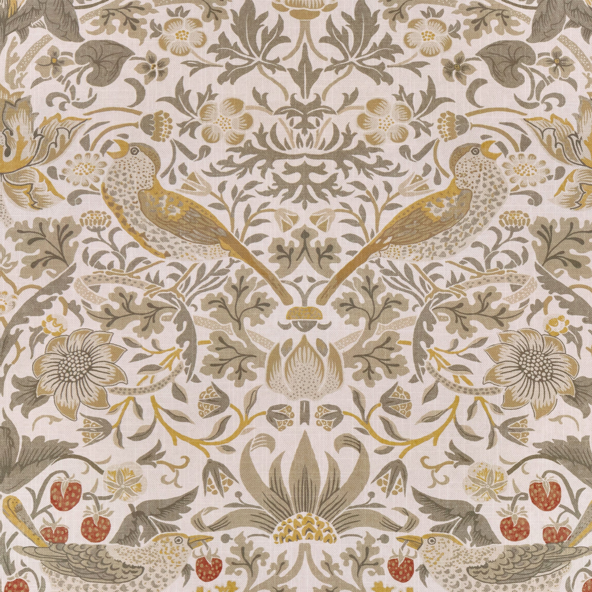 Perhaps William Morris’ most recognisable design, Strawberry Thief, draws inspiration from the thrushes that would sneak beneath the strawberry nets in his Kelmscott Manor garden. The original pattern took several days to print using hand-carved woodblocks to build up the different colours. Designed in 1883, this pattern has been translated and digitally printed onto sumptuous velvet. This design is also available on cotton in a variety of colour combinations, further enriching its versatility and timeless appeal.