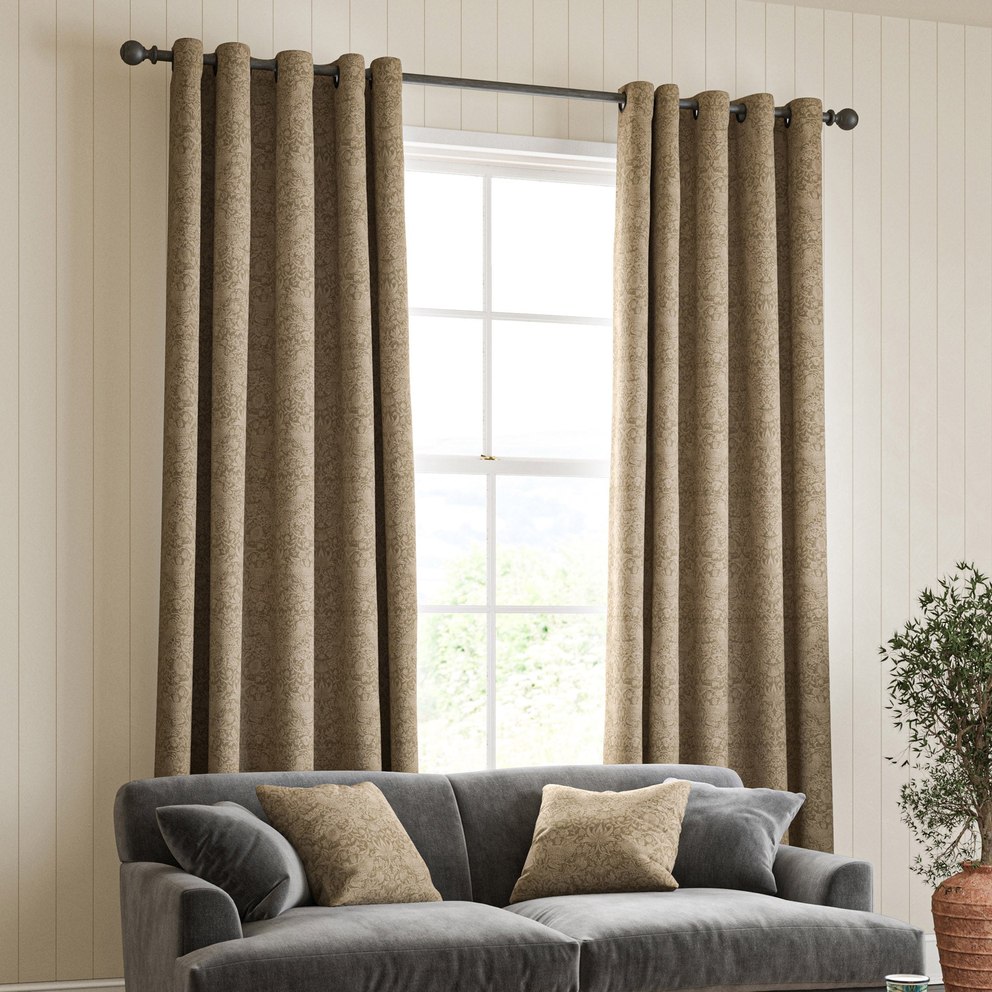 • Beige curtains