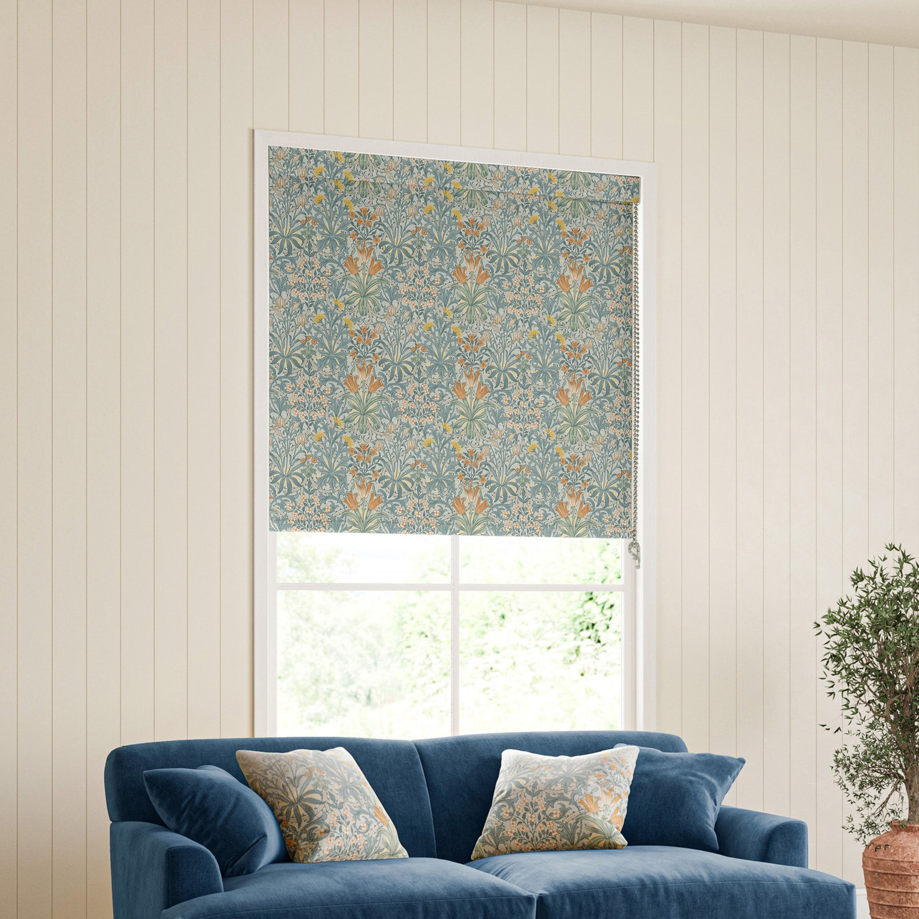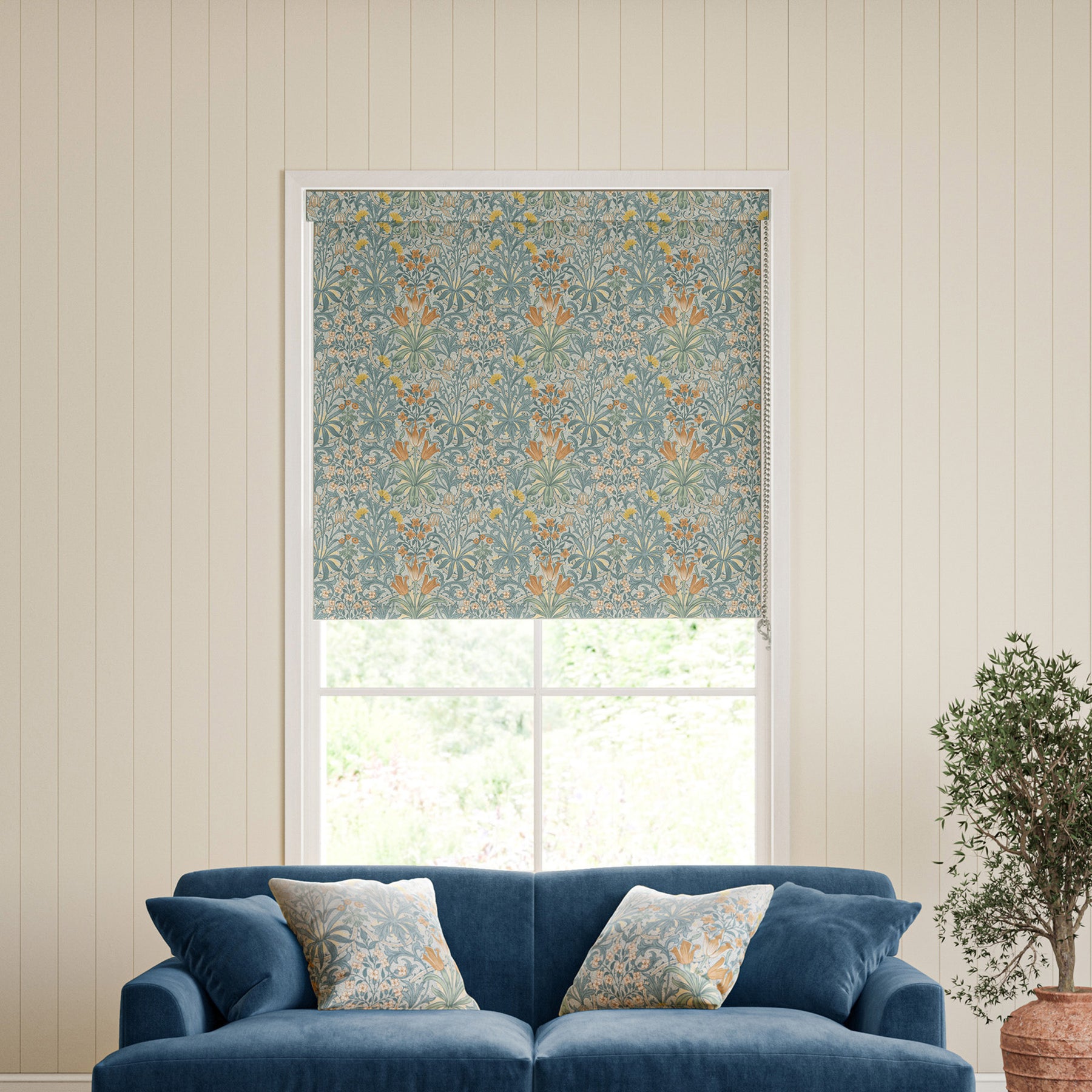 The William Morris Woodland Weeds Blackout Made to Measure Roller Blind in Bluebird combines classic design with practical functionality. Part of the renowned William Morris collection, this roller blind features a detailed Woodland Weeds pattern in a rich Bluebird shade, adding timeless elegance to any room. Crafted from 100% polyester, the blackout fabric effectively blocks out light, ensuring privacy and helping to create a restful environment.