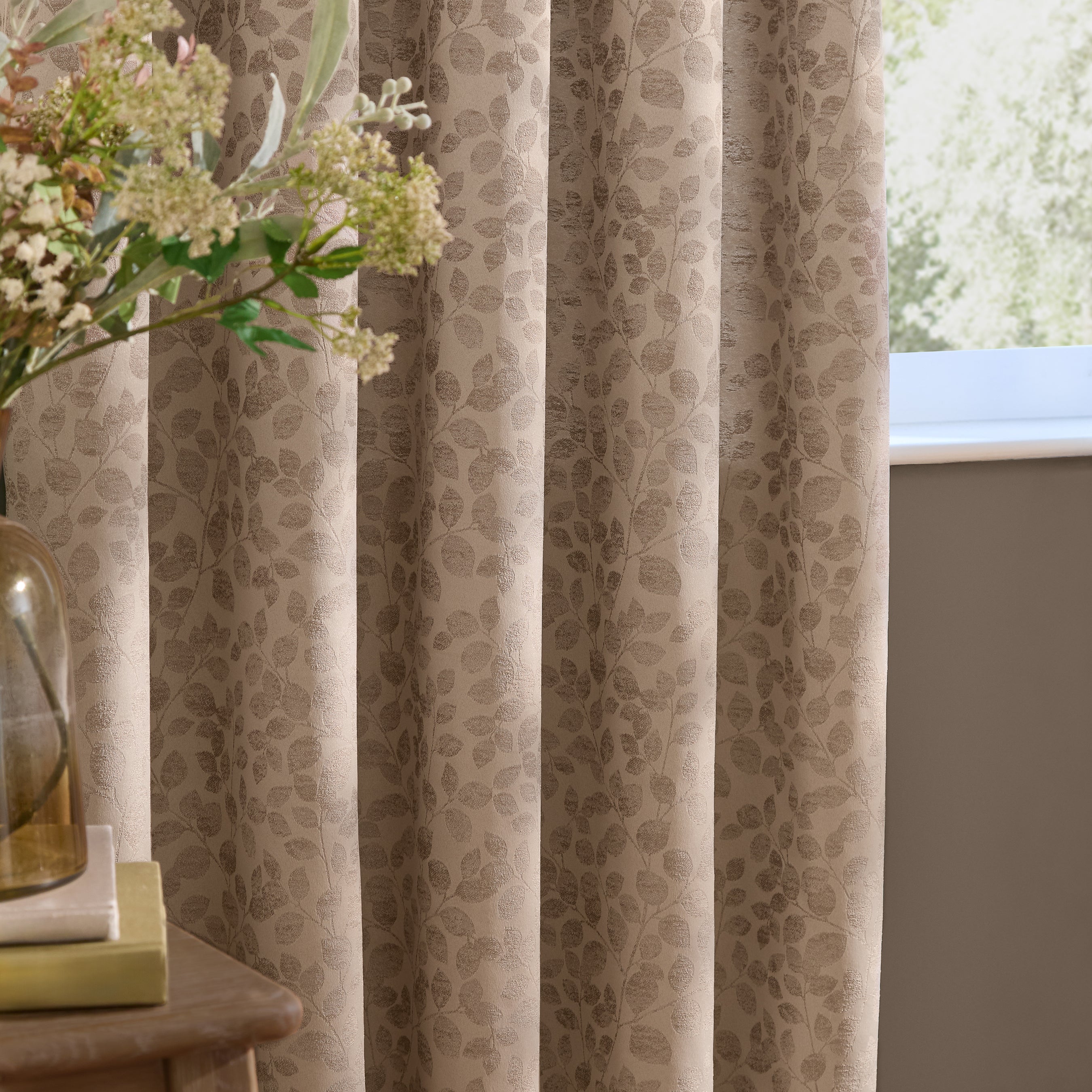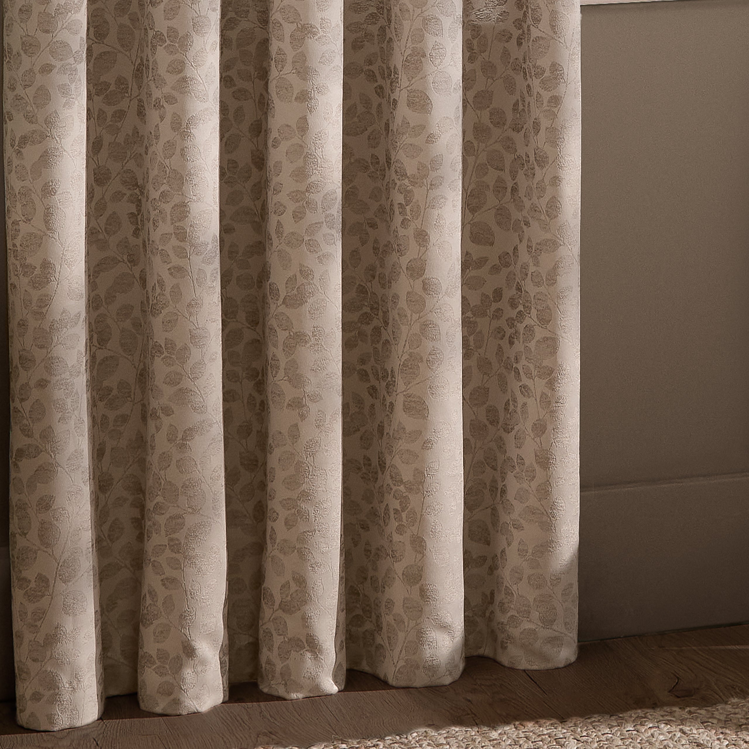 Bring serene elegance into your home with the Wylder Grace Leaf Jacquard curtains. The delicate leaf motif, woven into luxurious matt satin jacquard, creates a sophisticated natural aesthetic that softens any room. Lined with room-darkening fabric to block unwanted light and maintain privacy, these ready-made eyelet curtains combine beauty with practicality. Built to last, they offer the perfect balance of style and durability for a refined living space.