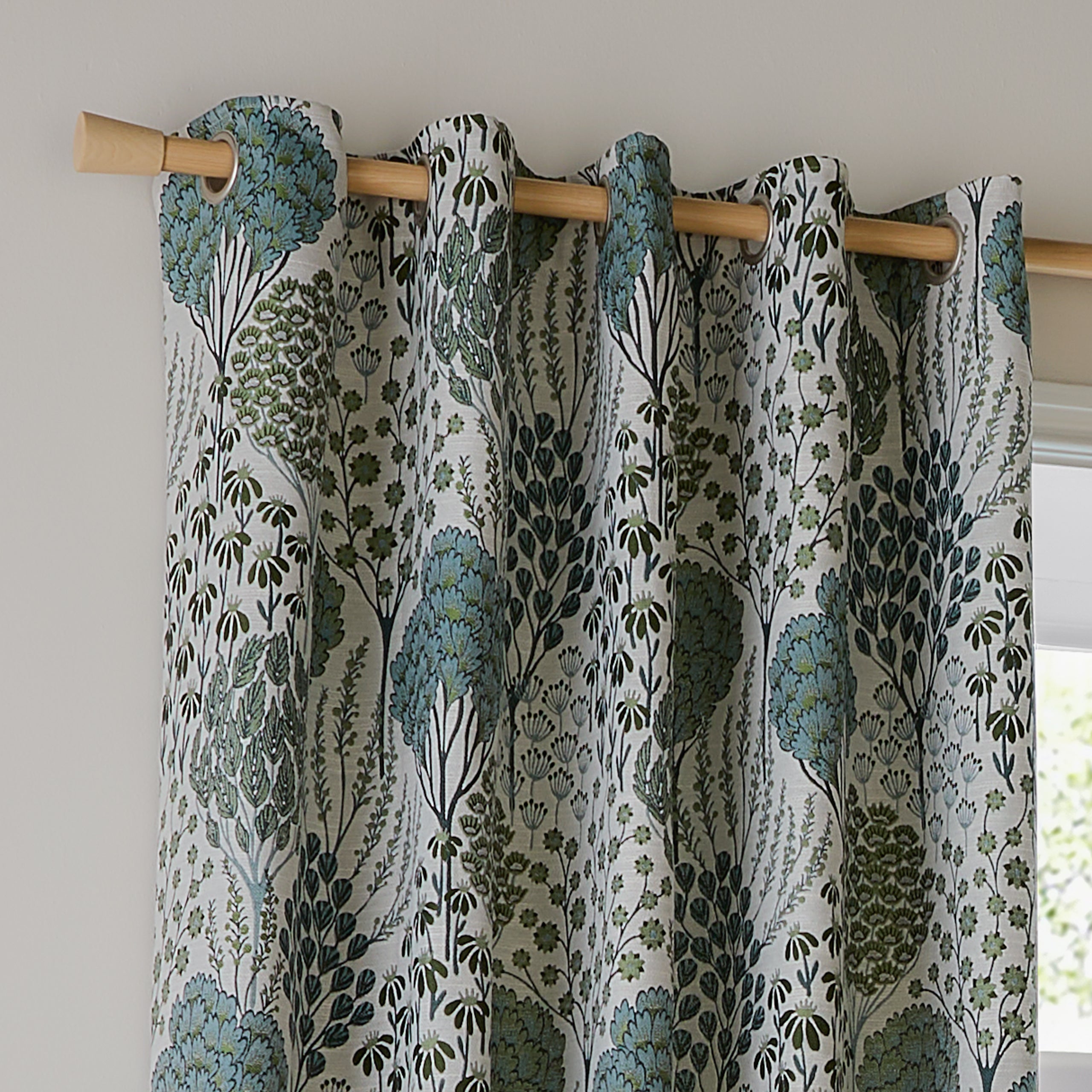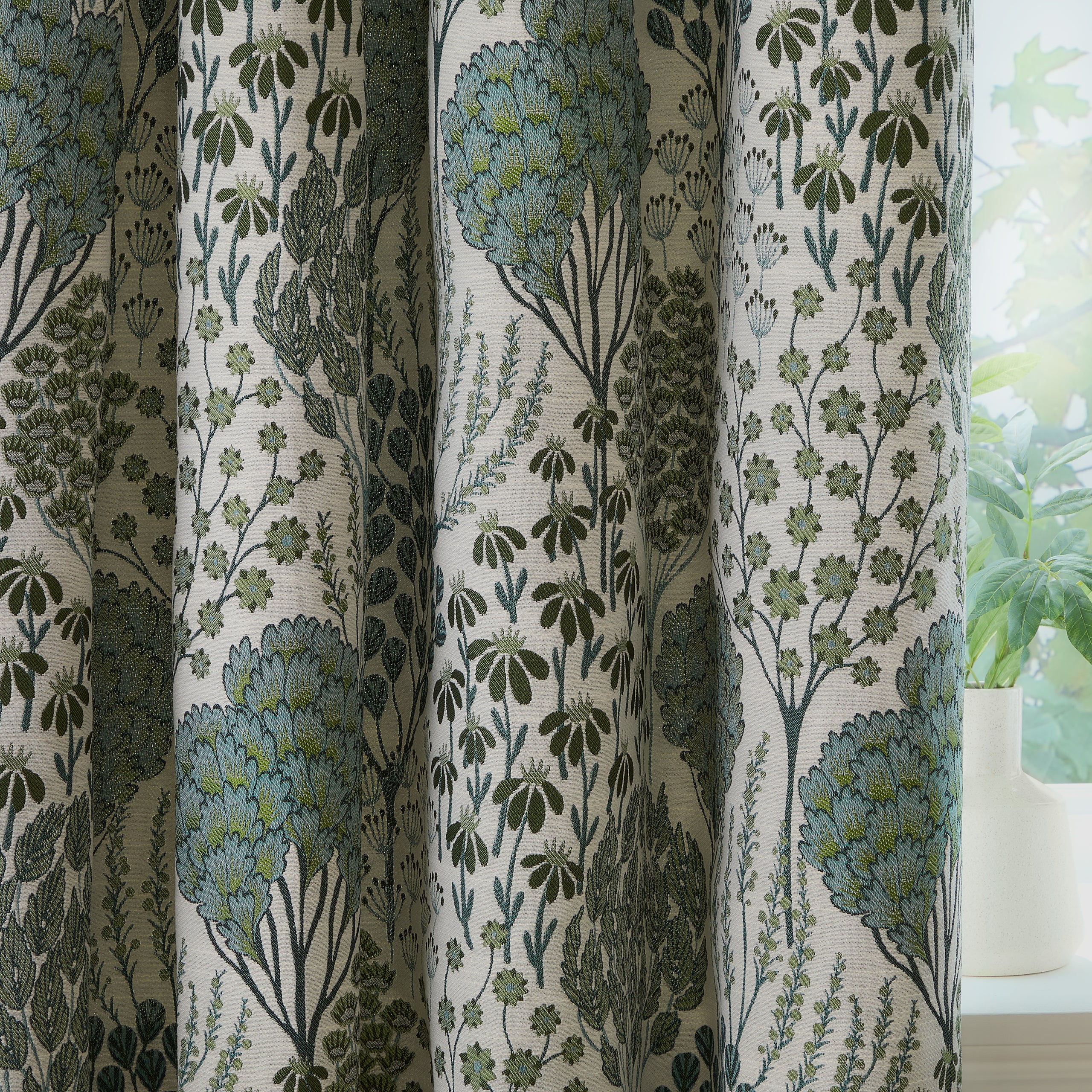 Transform your windows with the Wylder Nature Ophelia collection, where botanical sophistication meets practical performance. These ready-made eyelet curtains showcase an intricate floral jacquard weave in a calming thyme mineral palette, instantly elevating any interior scheme. The integrated blockout lining effectively reduces light penetration whilst maintaining visual privacy, ideal for bedrooms and living spaces requiring enhanced light control. Constructed from premium-grade fabric, the curtains combine substantial weight with fluid draping qualities, ensuring both aesthetic appeal and lasting durability. Pre-fitted eyelets streamline installation and enable smooth operation across standard poles, whilst the timeless botanical design complements contemporary and traditional décor alike.